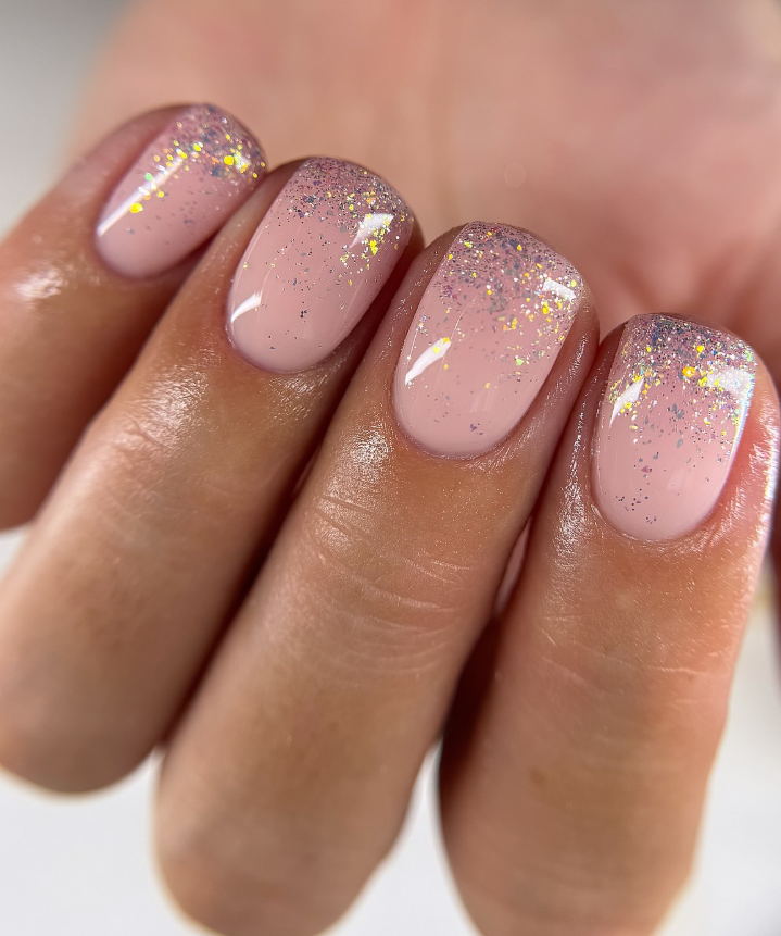 If prom night had a nail style, it would definitely be glitter ombré. These nails usually start with a soft nude or pink base and fade into sparkly glitter at the tips.
