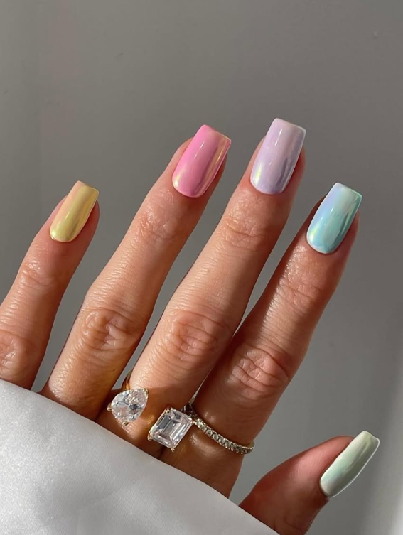 Pastel nails are perfect if you want a sweet and dreamy prom look. Shades like baby pink, lavender, mint green, and sky blue look soft and elegant.