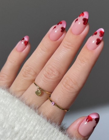 Tiny red hearts on a nude base feel sweet and minimal. This design is playful but still classy enough for everyday wear.