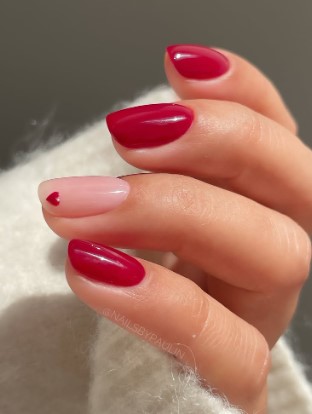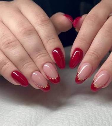 A gentle fade from nude to red creates a romantic, dreamy look. It’s elegant and perfect for a soft Valentine vibe.