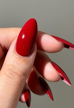 Almond-Shaped Red Nails