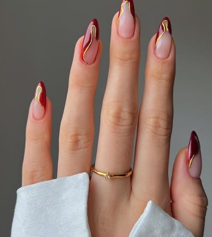 A tiny gold line or dot on red nails adds just the right touch of luxury without overpowering the design.