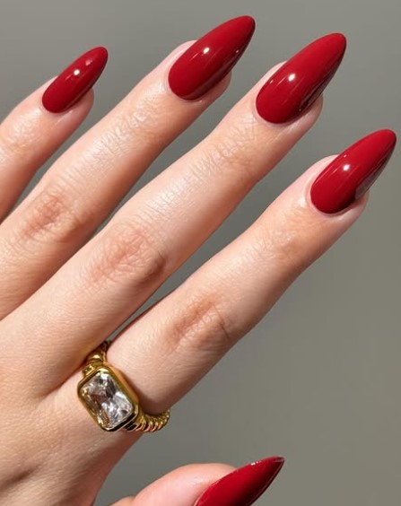 Almond-shaped nails instantly add elegance. Paired with red polish, they create a feminine and flattering look.