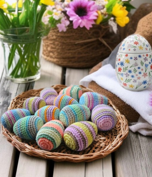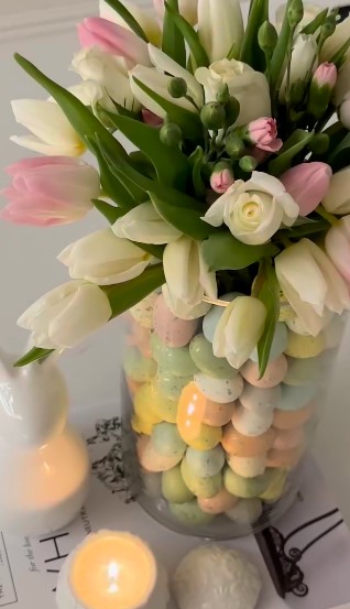 Decorative Easter eggs can become a stunning table display. Place colorful eggs in a bowl, glass jar, or small basket at the center of the table. You can use painted eggs, glitter eggs, or pastel plastic eggs for variety. This simple arrangement adds a festive and playful touch to your table. It’s an easy decoration that still looks elegant.