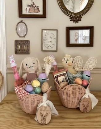 Small Easter baskets can be used as charming table decorations. Fill them with colorful eggs, mini flowers, or Easter candies. Place them in the center of the table or use them as individual decorations for each guest. Woven baskets add a rustic and cozy spring feeling. They are both decorative and functional.