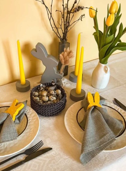 Bunny decorations are a classic Easter symbol and work perfectly on a table. Small bunny figurines can be placed near plates or around the centerpiece. You can also use bunny-shaped napkin holders or table signs. These adorable accents make the table feel festive and fun. They also add personality to your Easter table setting.