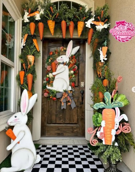 Carrot-themed decorations are a fun and playful option for Easter. You can hang a carrot-shaped sign or decorate a wreath with small carrot accents. Bright orange colors paired with greenery create a cheerful spring look. This decoration adds a creative twist to traditional Easter decor. It’s especially popular for family-friendly homes.