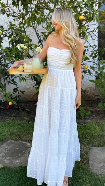 White tiered dress feels light fresh and perfect for hot summer days. I love how the soft layers give a flowy and airy vibe. It keeps you cool and comfortable while looking cute and stylish. Perfect for outings vacations and sunny day plans.
